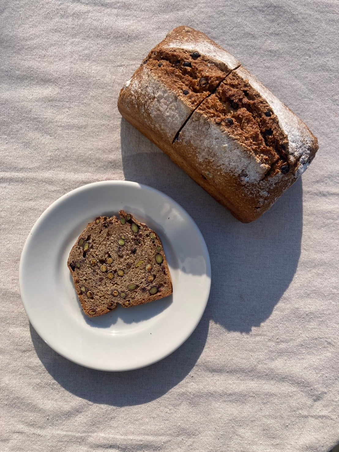 去年収穫した黒千石大豆を自家栽培/自家製粉の南部小麦100%の生地にたっぷり練りこんだパンです。型に入れて大きく焼く分、水分が蒸発しきらずみずみずしく仕上がりました。